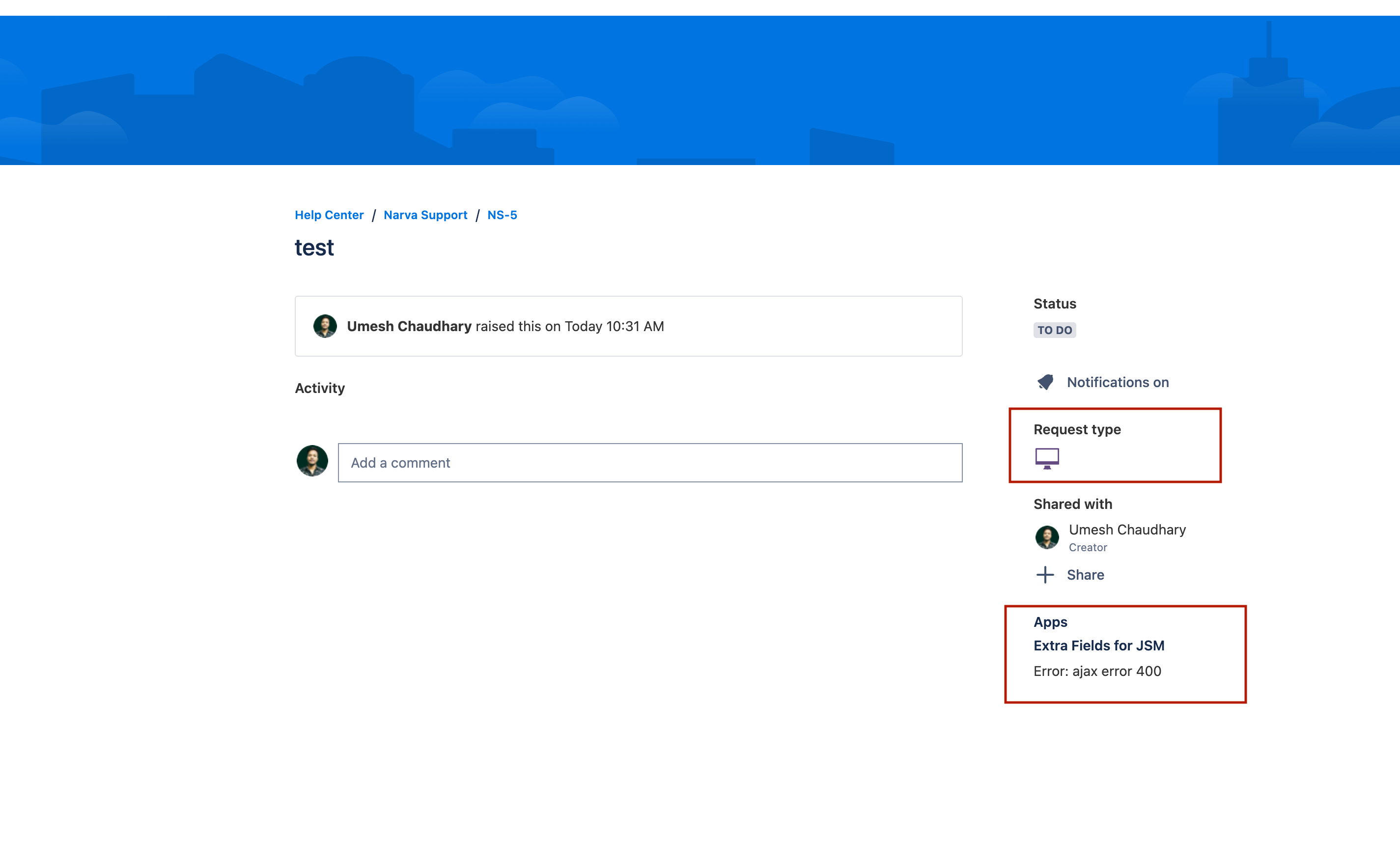 This error can occur if the request type linked to the request no longer exists in the Jira Service Management project. This may happen if the request type was renamed, deleted, or replaced.