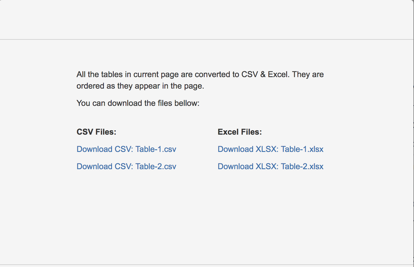 This will open a new prompt where link to CSV/Excel files will be displayed.